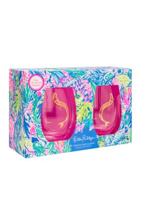 Two friends can enjoy a refreshing glass of wine together with this pair of stylish stemless wine glasses from Lilly Pulitzer. Lilly Pulitzer Mermaids Cove Stemless Wine Glass Set. View full price charts Size.