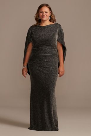 Glitter Drape Sleeve Stretch Plus Size Sheath David S Bridal